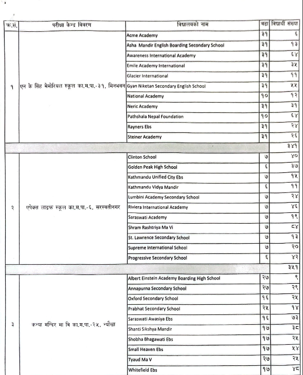 परीक्षा केन्द्रहरु थाहा पाउन यहाँ क्लिक गर्नुहोस