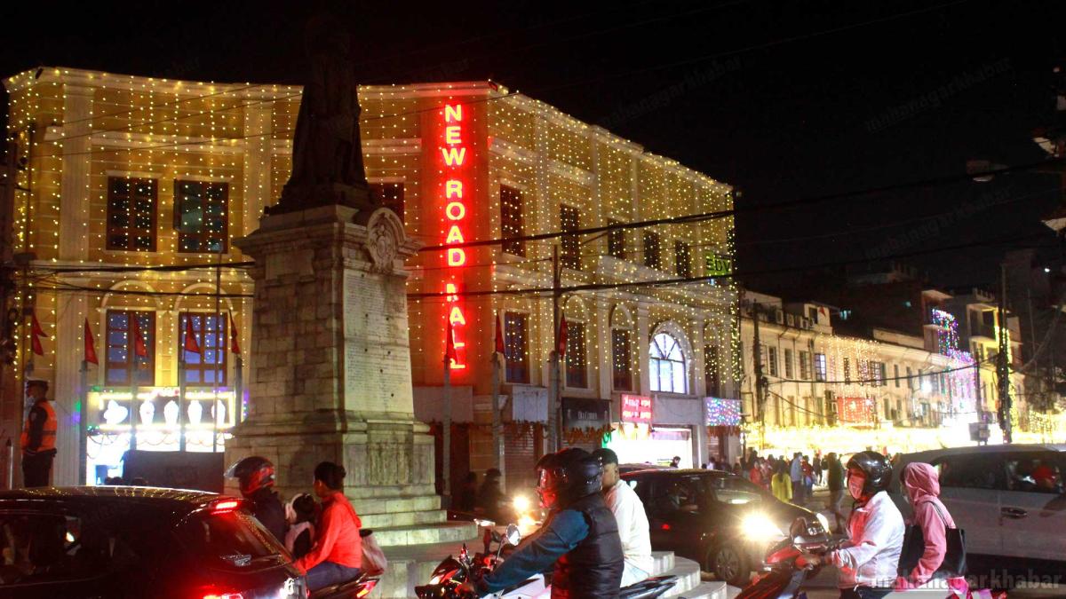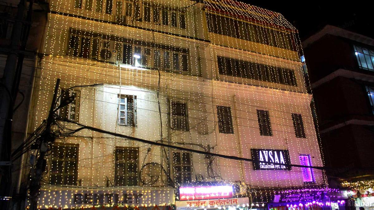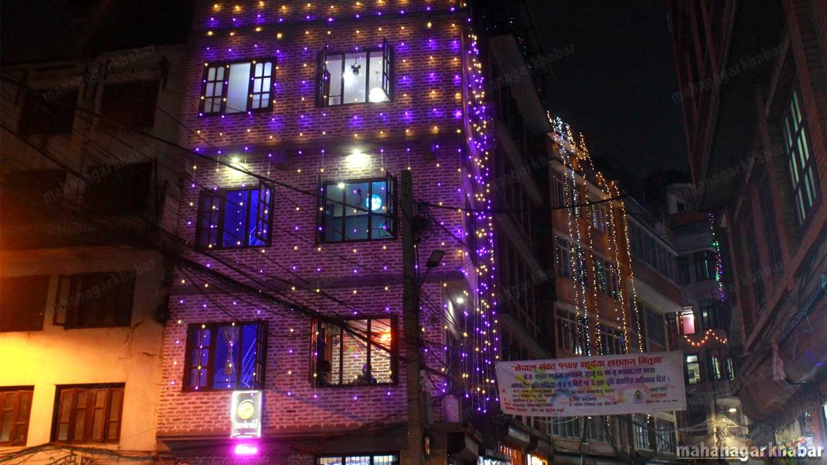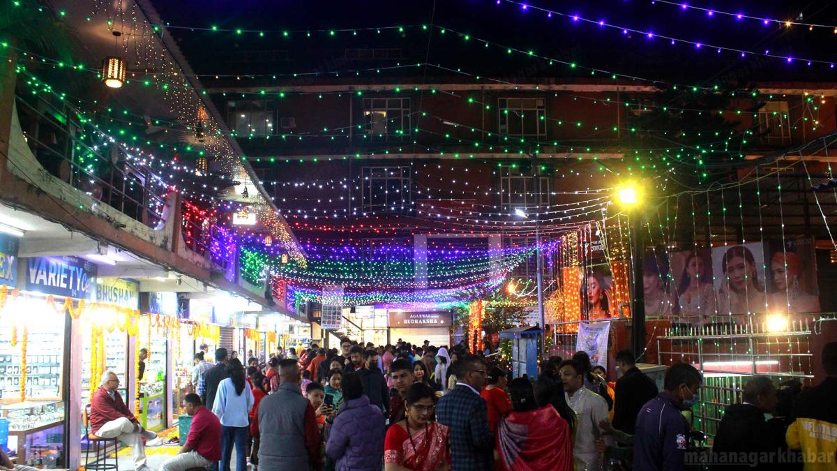 विहिवार आज लक्ष्मीपुजाको दिनको काठमाडौंको न्यूरोड, बसन्तपुर क्षेत्रका मल, सडक, पसलहरु विभिन्न रंगीचंगी बत्तिले भिलीमिली भएको छ ।