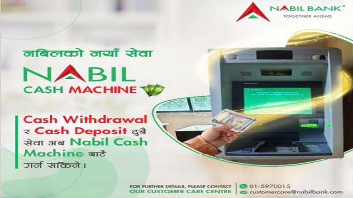 नबिलको क्यास मेशिनले ग्राहकहरुलाई एटिएम मार्पmत रकम झिक्ने सँगै क्यास जम्मा पनि गर्न सक्ने सुविधा दिने भएको छ ।