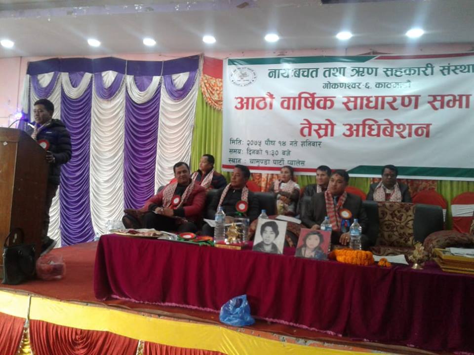 काठमाडौं । नायः बचत तथा ऋण सहकारी संस्था लिमिटेड, बौद्धजोरपाटीको शनिवार आठौं साधारणसभा तथा तेश्रो अधिवेशन भव्यताका साथ सम्पन्न भएको छ ।