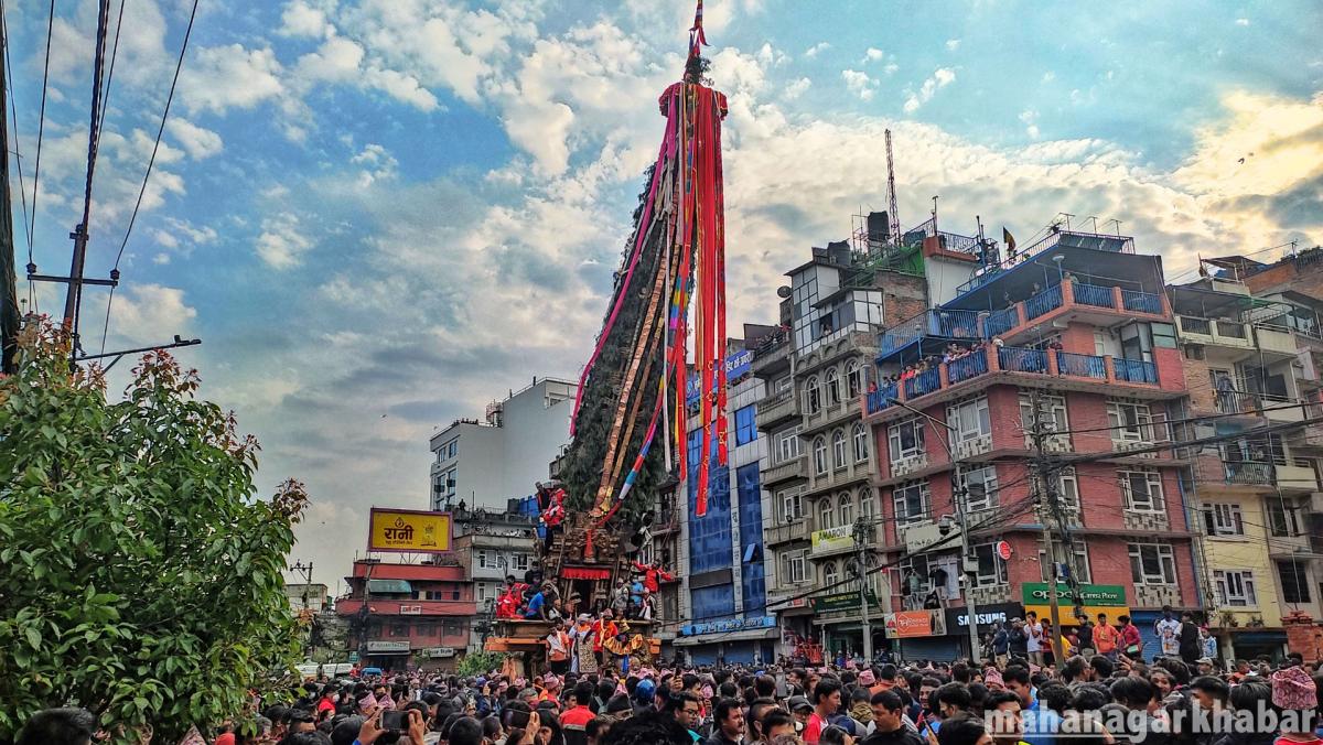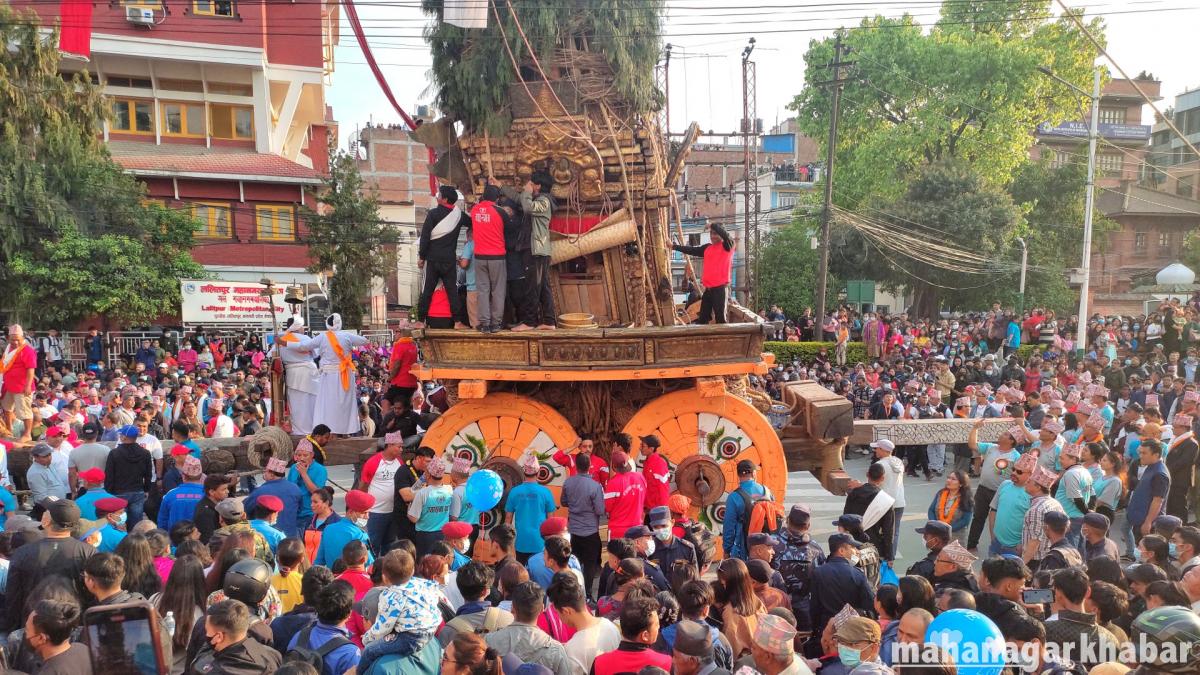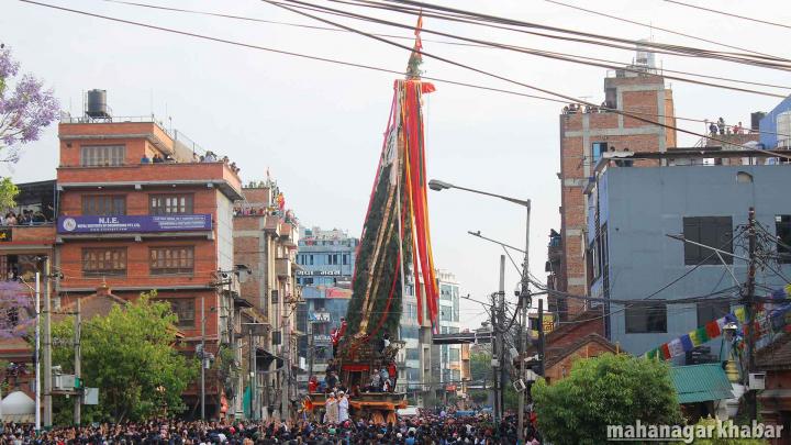 सोमबार ललितपुरको पुल्चोकबाट रथ तानेर गाःबहाल नजिक पुगाएको छ ।